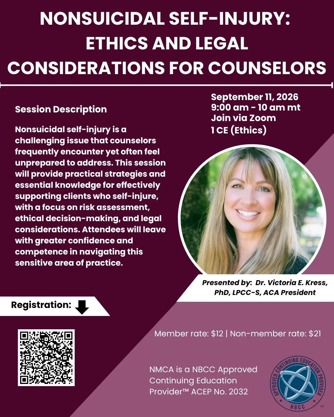 Nonsuicidal self-injury is a challenging issue that counselors frequently encounter yet often feel unprepared to address. This session will provide practical strategies and essential knowledge for effectively supporting clients who self-injure, with a focus on risk assessment, ethical decision-making, and legal considerations. Attendees will leave with greater confidence and competence in navigating this sensitive area of practice.